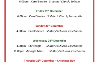 Merry Christmas to all of our Parishioners and neighbours! Should you need to contact us at this time please either leave a message on 07342 166 188 or email parishclerk@easebourne.org. Emails and messages will be monitored for emergencies and all non-urgent queries will be answered when the office fully [...]